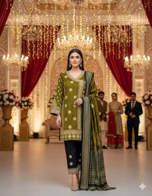 Eid Collection Multani Khadi Sussi with Heavy Velvet Dupatta - 3 Piece